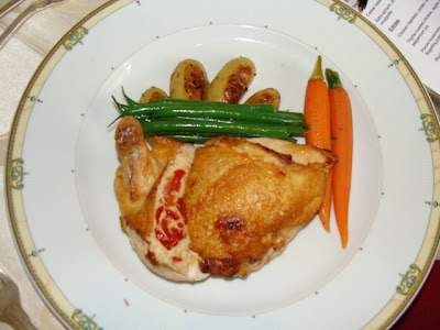 Chicken Option #2: Chicken breast stuffed with porcini mushroom, asiago cheese and sun-dried tomatoes, fingerling potatoes and green beans. We've had this entree before--it is a safe choice.